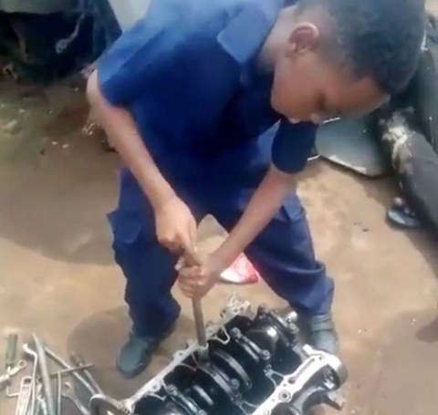 As many Nigerian school students are currently at home enjoying the long holidays, a Nollywood filmmaker, decided that it's the best time to send his son to learn mechanic.