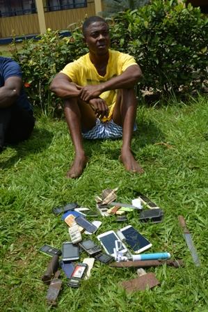 Imo Police command operatives nabbed him with one locally made pistol, one live cartridge, one short axe, three daggers and 15 mobile phones of different makes were recovered from the 19-year-old suspect.